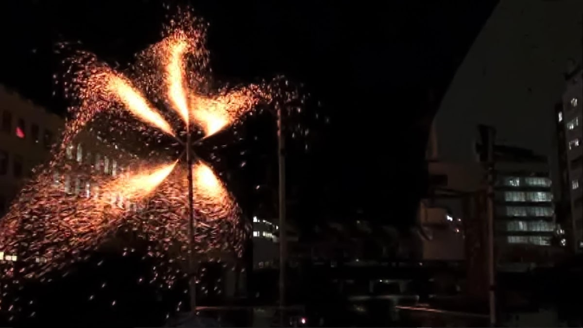 科学反応で色をつける洋火とは異なり、オレンジ色の火の粉のみで色や形を表現。徳川家康公の時代から約300年も続く歴史深い花火です。