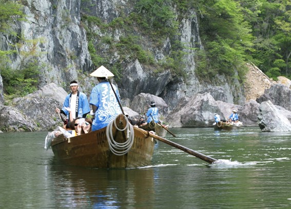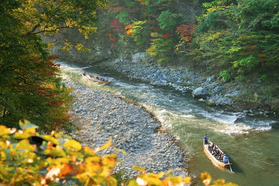鬼怒川ライン下りは、急流を下るスリリングなゾーンから船からしか見ることができない景色を楽しむことができ、また船頭さんの巧みな櫂(かい)さばきや歴史的な話を聞けるのも醍醐味です。