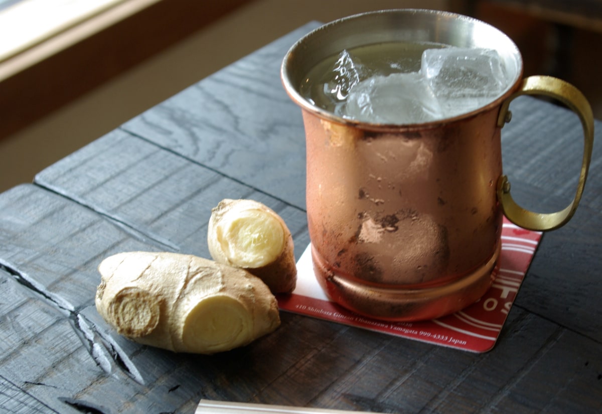 冷え冷えの銅のカップで出される、ほのかな甘みと爽やかな生姜の辛さがたまらないジンジャーエールは、湯あがりに最高のドリンクです。
