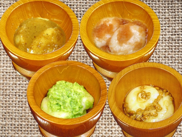 銀山温泉の土産物が揃う、銀山観光センター「大正ろまん館」。館内のレストランで味わえる尾花沢産最上早生の蕎麦(750円~)の付け合わせメニューが話題です。