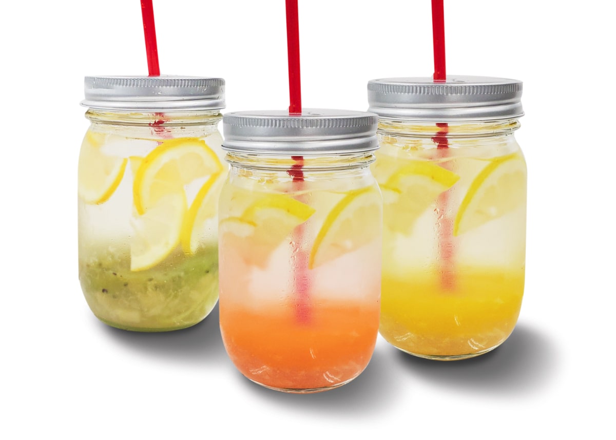 さっぱり爽快な味で湯あがりにぴったりの「レモネード」(各種490円)。フルーツシロップは、レッドグレープフルーツ・白桃・キウイの3種類あるので、お好みで。