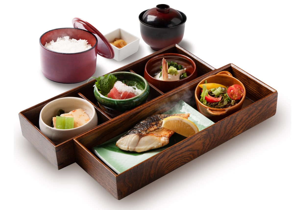 1つ目のおすすめグルメは、少しずつたくさんの種類のおかずを味わえ、優雅な気持ちになれる「湯楽(ゆら)御膳」(1,380円)。バランスの良い献立は、どれも優しい味つけです。