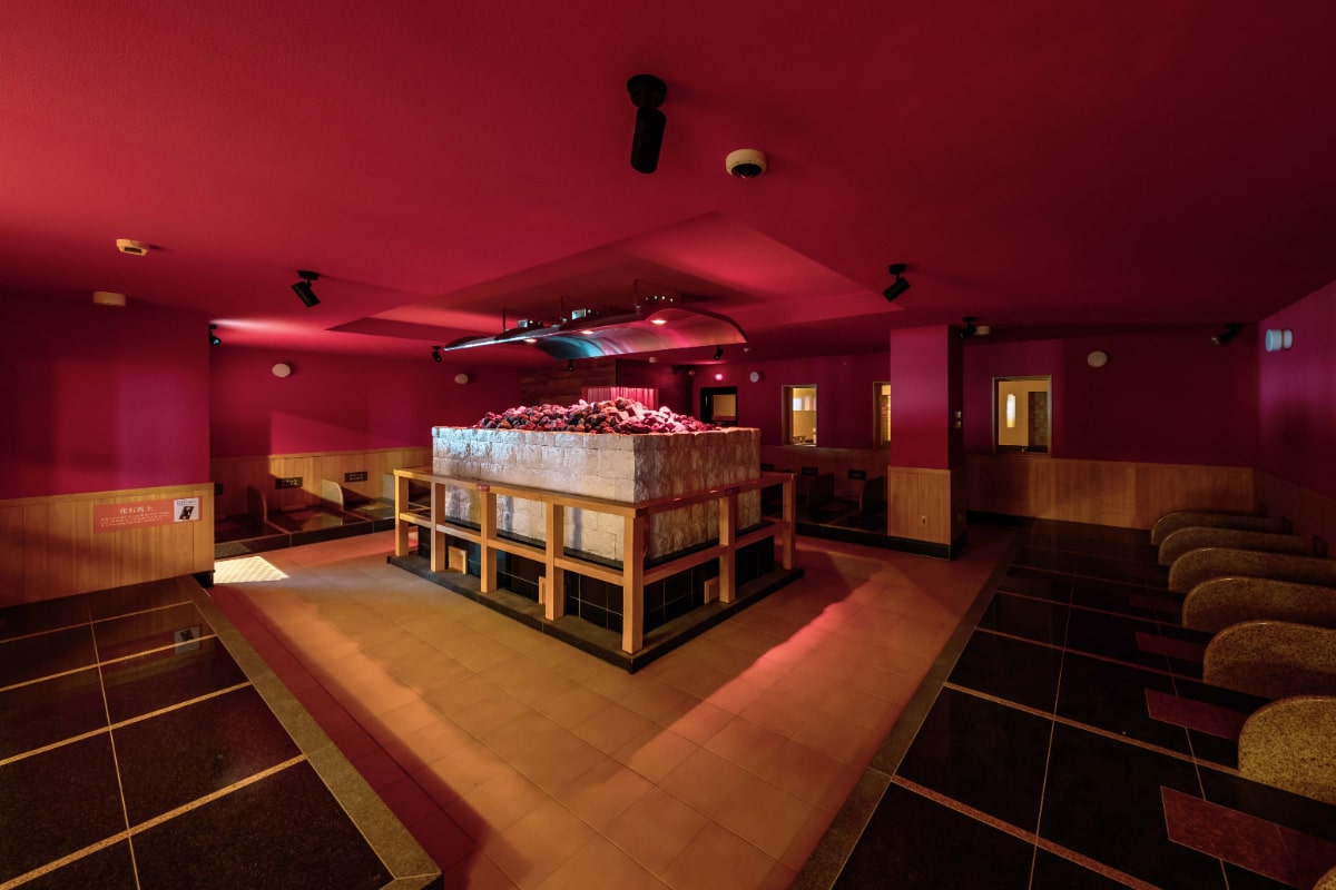 遠赤外線で身体の芯まで温めるプルガマや、8種類の鉱石を用いた岩盤浴(女性専用もあり)、TVを見ながらくつろげる床暖房の部屋など、いずれもじんわりと発汗を促す設備も充実。プルガマ は、韓国生まれのサウナのことで、釜で熱した薬石を部屋に入れて大量の遠赤外線を放熱します。