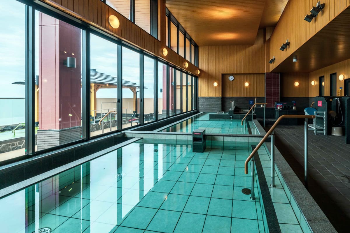 海に向かう一面の窓際にある「白湯」は、開放感にあふれる熱めの湯です。