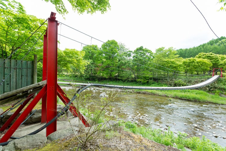 提供:銀婚湯(敷地を流れる落部川に架かる吊り橋)