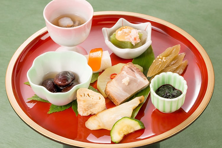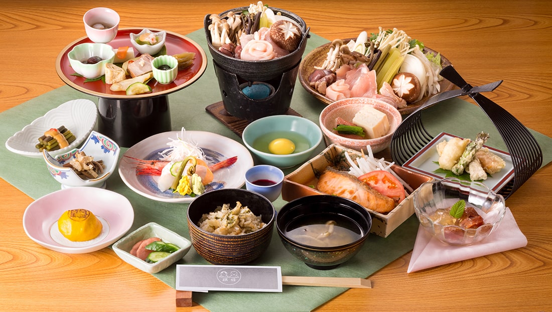 冬の鶏鍋のほか、二つの海から獲れる魚介類、春のわらびやフキなどの山菜、特に山菜は塩漬けして年間を通してご提供できるようにするなど工夫をしています。