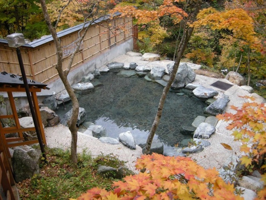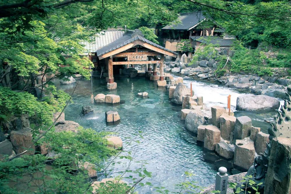大自然の中、総面積470畳の広さの大露天風呂を満喫「宝川山荘」
