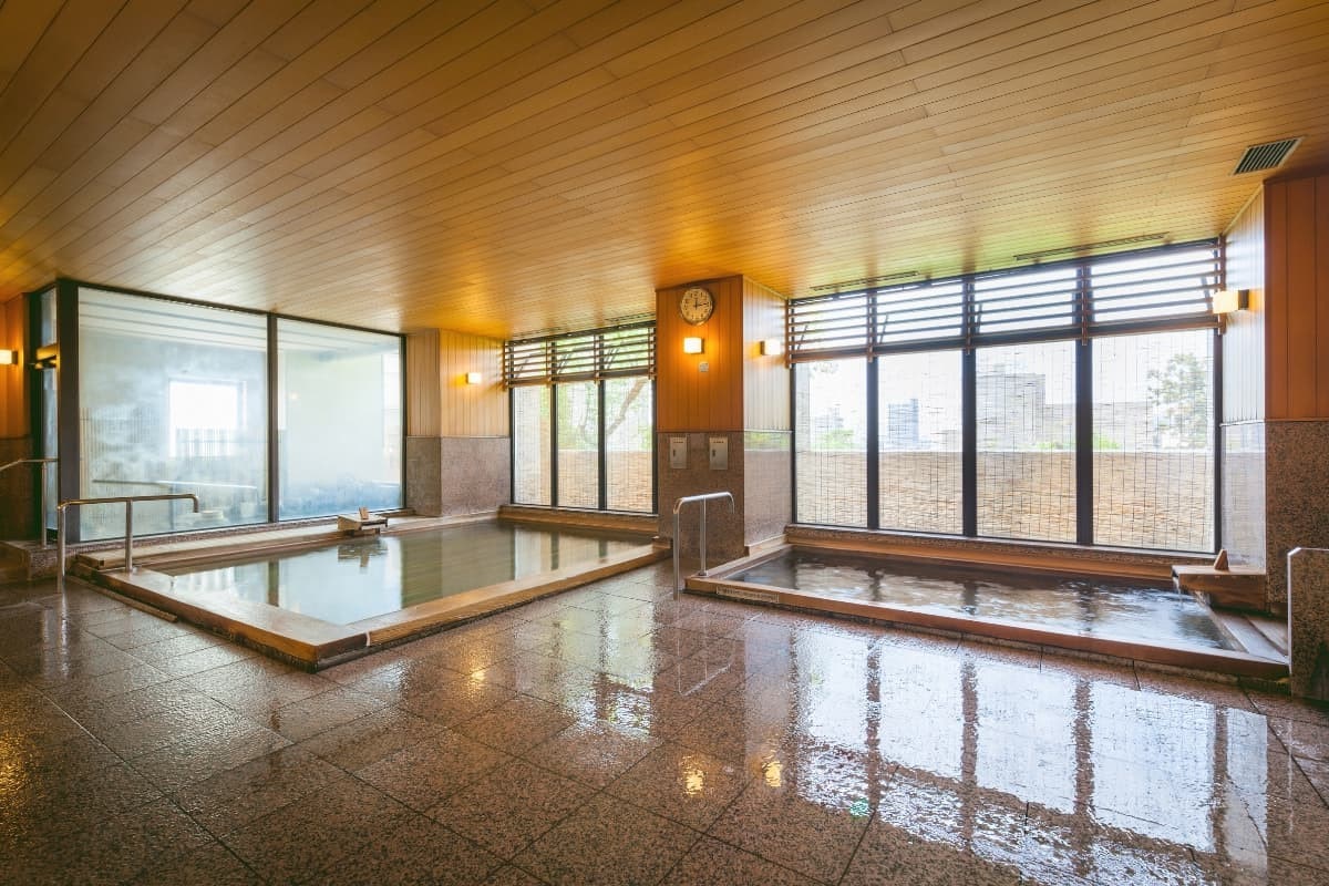 大・中の浴場と貸切風呂があり、太古の海の化石成分が溶け出した約1千万年前の地層から湧き出る、透明感のあるミネラル豊富な湯が堪能できます。