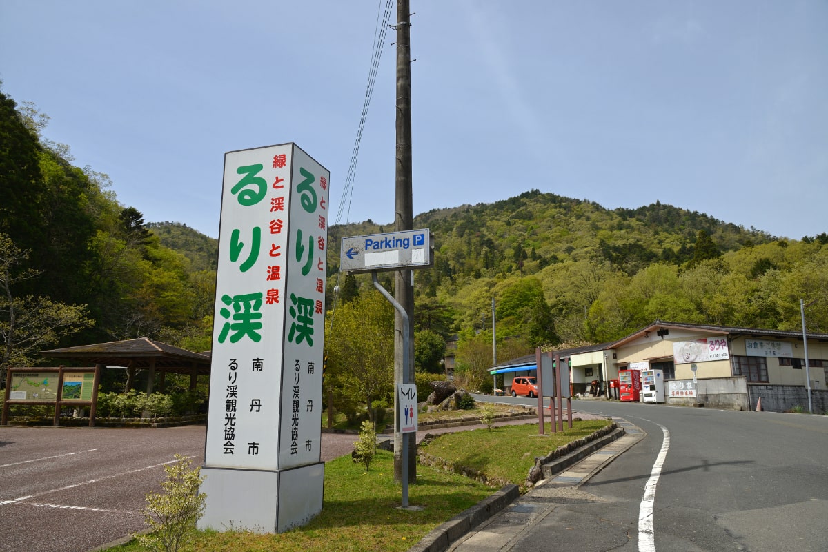 「るり渓」とは、京都北西にある、城下町・園部(そのべ)の山奥にある景勝地の通称で、「通天湖(つうてんこ)」から流れる園部川の渓谷があります。