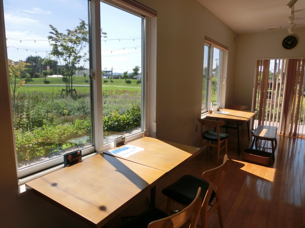 「木かげのカフェ」は、水着で浸かれる日帰り温泉や体験工房が楽しめる「道の駅ガーデンスパ十勝川温泉」内にあるレストランです。
