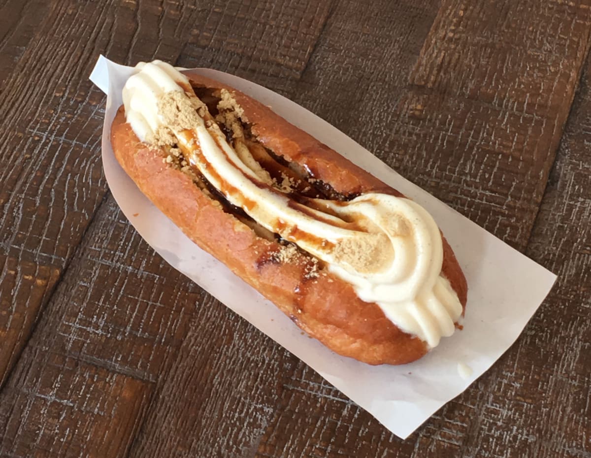「豆乳ソフトクリームドッグ」(350円)もおすすめ。揚げたてコッペパンに豆乳ソフトクリームがたっぷりと入った、どこか懐かしさを感じるスイーツです。