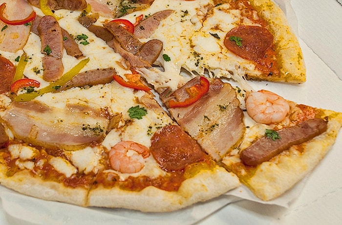 店内の一角にオープンした本格的イタリアン「カピトリーノ」では、独自の配合でブレンドした粉を使用した石窯焼きのこだわりピッツァやパスタが味わえます。