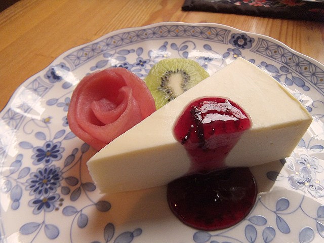 おすすめは、ブルーベリーソースで仕上げた濃厚な味わいの「レアチーズケーキ」(440円)。別所温泉の温泉で淹れたまろやかな味の「温泉コーヒー」(660円)との組み合わせで、優雅なひとときを楽しめます。