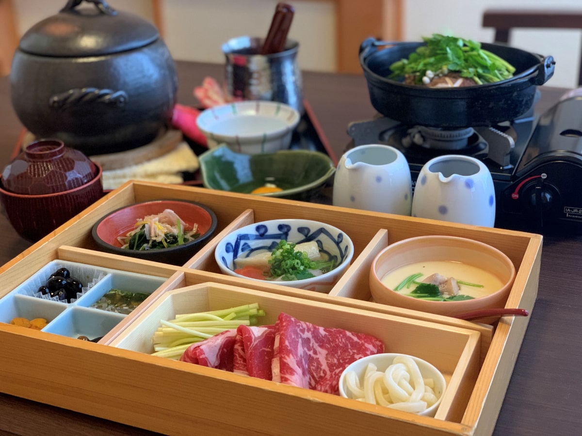 名物は、「信州産牛のすき焼き御膳」(3,850円)。信州牛のロースはとても柔らかく、特製の割り下がその旨味を引き出します。ランチでは自慢の玉子焼きが食べ放題と嬉しいサービスもあります。