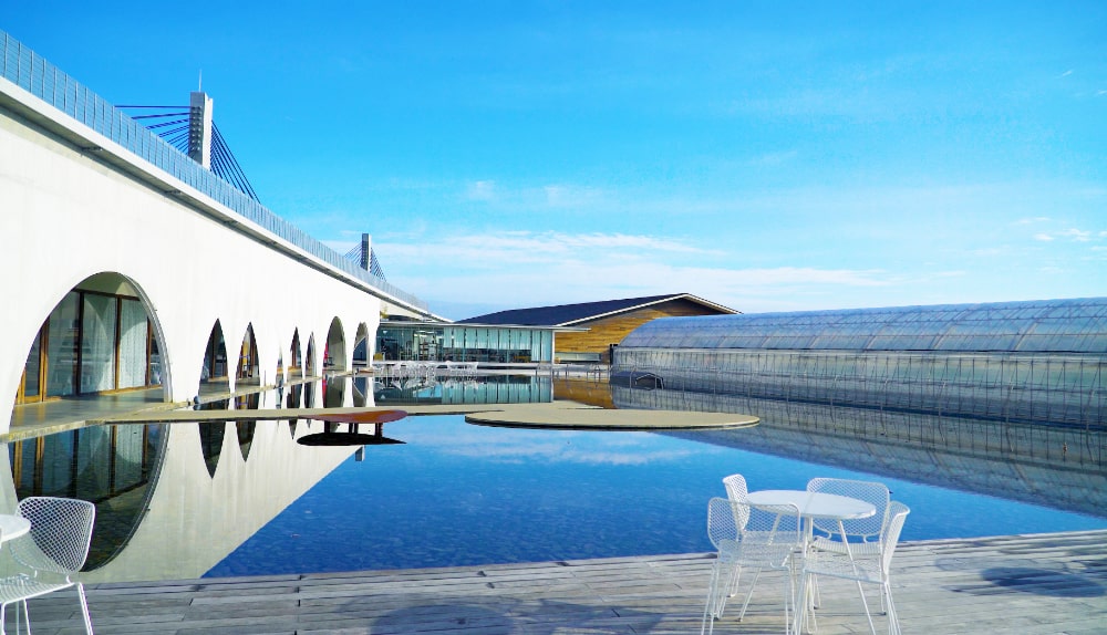 多様なクリエイターによる建築・インテリアに囲まれ時を過ごせる、「癒し」と「食」をテーマにした複合温泉リゾート施設「アクアイグニス」。