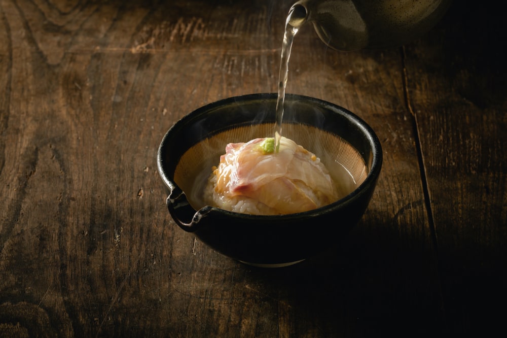 中でも伊勢まだいの「鯛茶漬け」(1,600円)は絶品。新鮮な伊勢真鯛の味わいを、特製胡麻ダレと鯛のあらからとった出汁が一層引き立てます。