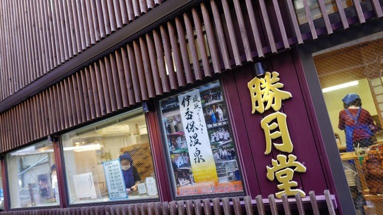「勝月堂(しょうげつどう)」の湯乃花(ゆのはな)まんじゅうは、手作り感あふれるふぞろいな形とふっくらもちもち触感の生地が美味しい温泉まんじゅうで人気のお店です。