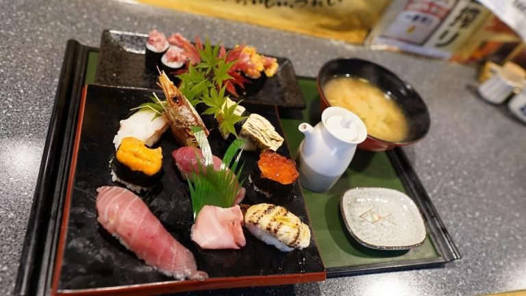 お寿司は、握りのセットを注文すると、その時期の美味しいお魚を選んで握ってくれます。海無し県とは思えない鮮度の良さと大きなネタが絶品で、温泉の後に必ず立ち寄る常連さんも多いおすすめのお寿司屋さんです。