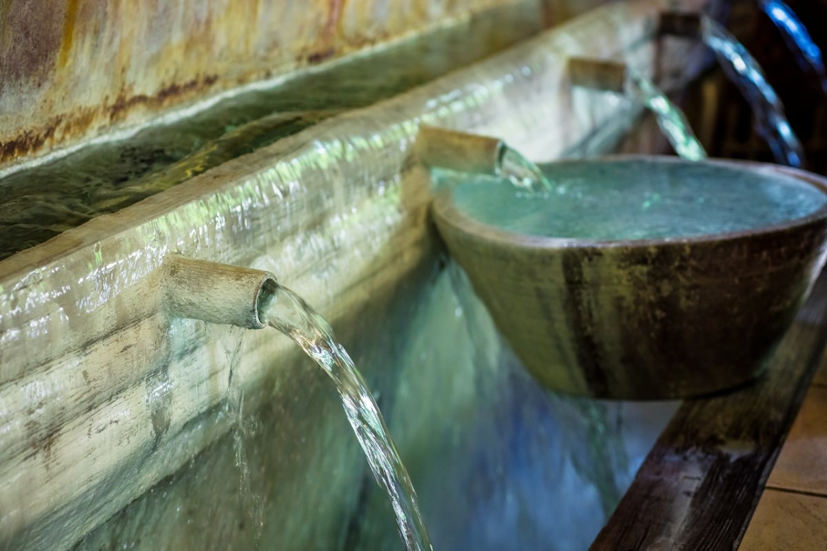 さらに、打たせ湯のように冷泉を頭の上から浴びられるようにもしています。これにより、古来の滝に打たれる滝行のように脳神経に作用するとも言われ、古くからご好評いただいています。
