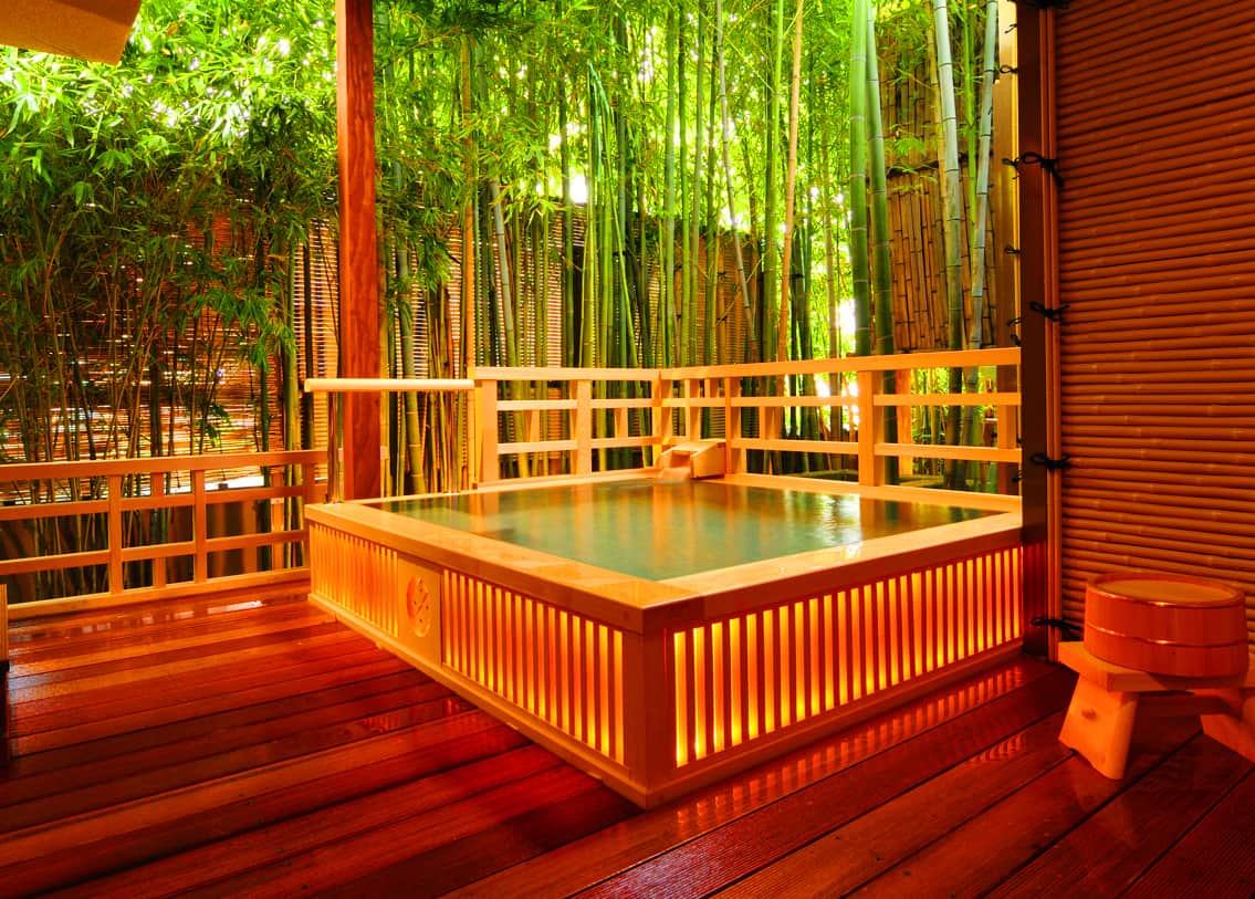 別途料金で、初川のせせらぎと情緒ある竹林を眺める貸切露天風呂も利用できます。