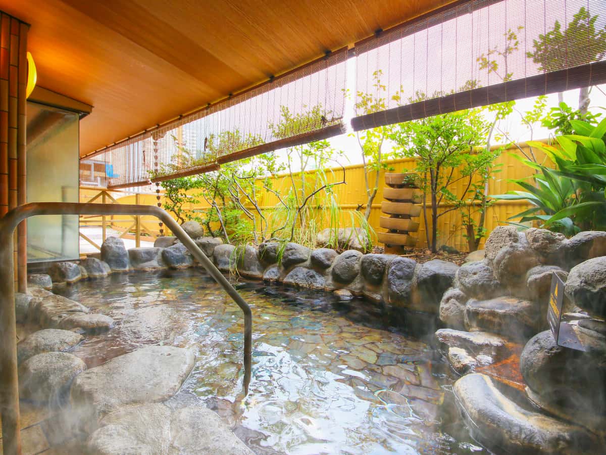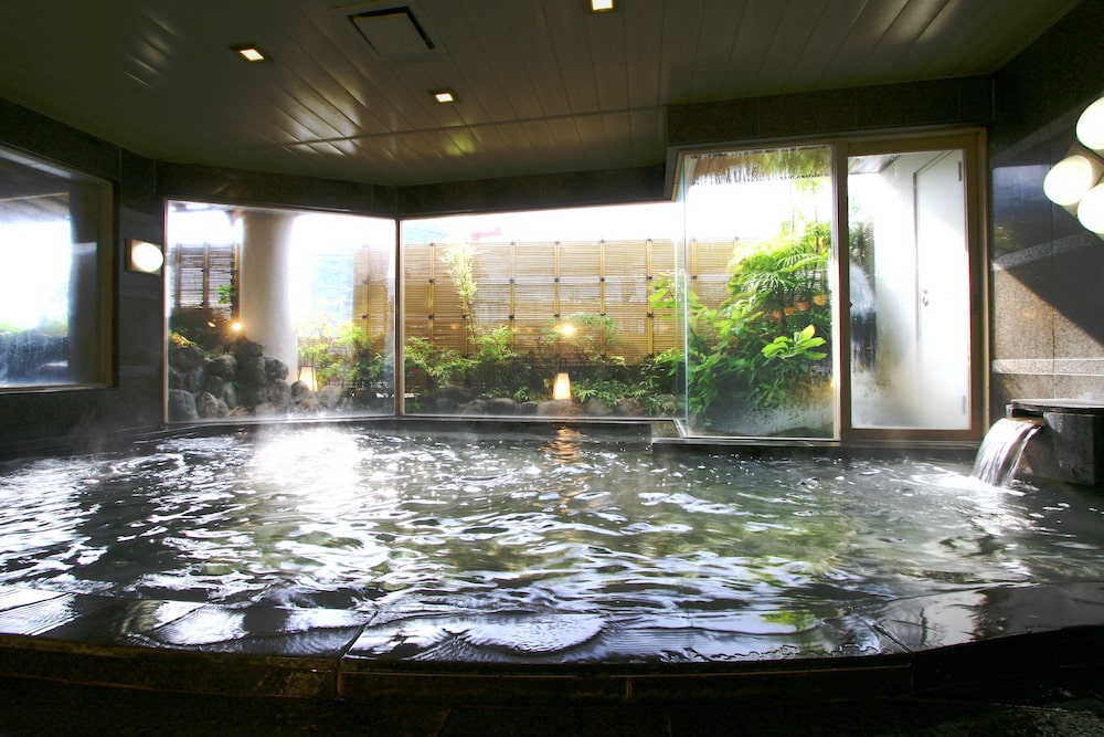 熱海駅からビーチに降りる途中にある「大江戸温泉物語 熱海温泉 あたみ」では、湯量豊富な熱海温泉を広い大浴場や露天風呂で楽しめます。