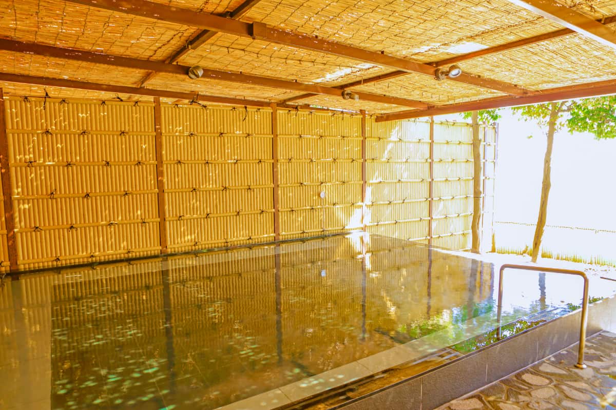 一面の窓が開放的な大浴場や海を間近に臨むアジアンテイストのおしゃれな露天風呂など。