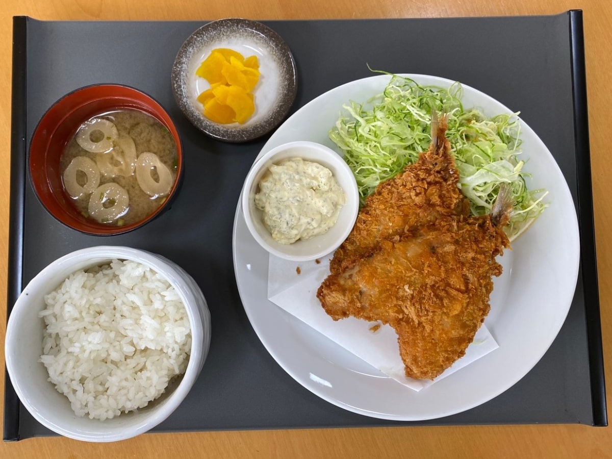 併設の食事処には、アジやさんまなど地元食材を使った料理から、とんかつ定食・カレーなど定番メニューが揃います(200円〜1,000円)。
