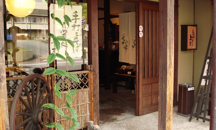 古民家を改築した落ち着いた雰囲気の「手打ちそば 加賀上杉」。塗りの器が加賀の旅の気分を盛り上げます。