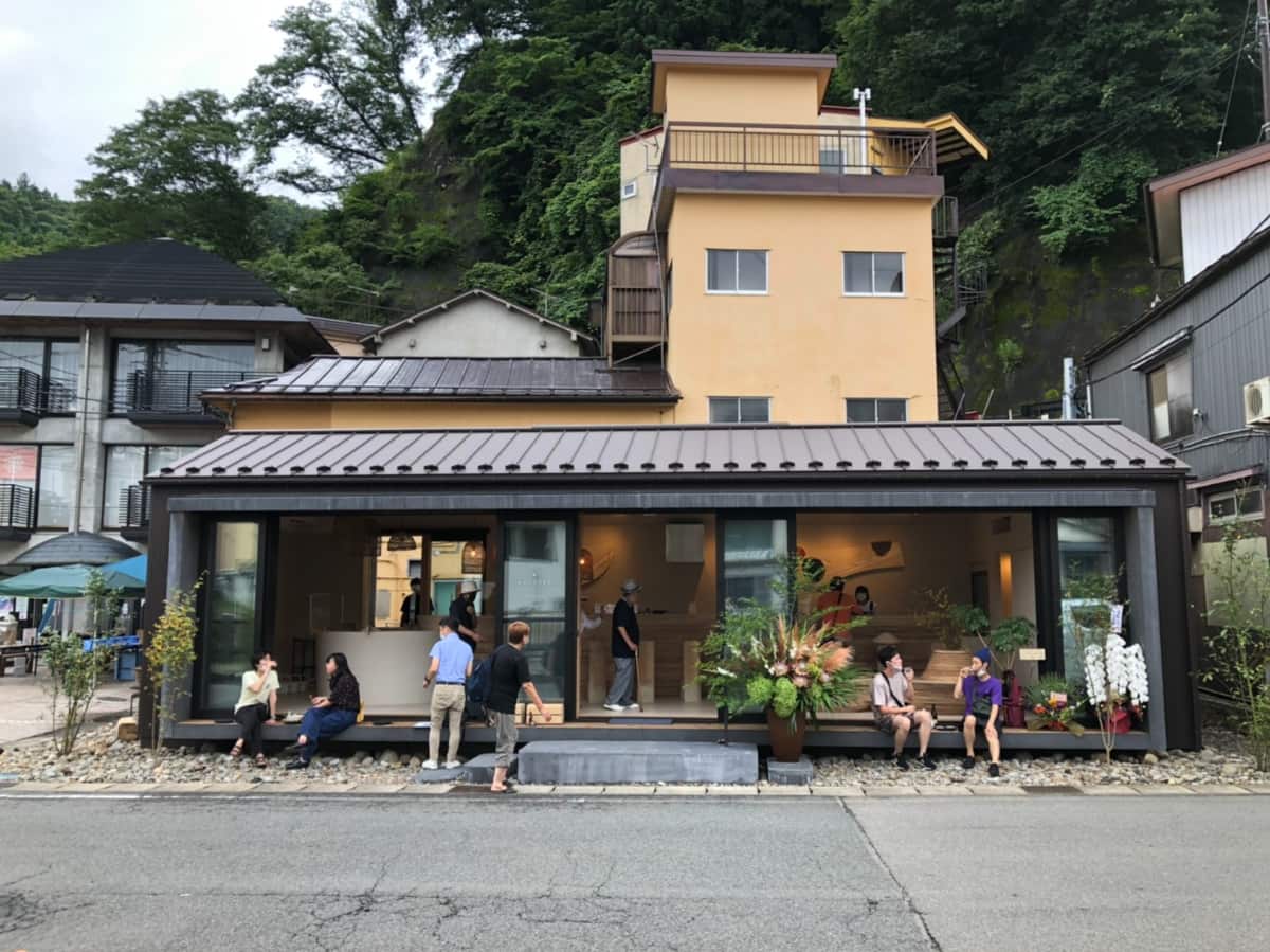 木の温もりに溢れたカフェスペースでは、そば粉を使った「おららのガレット」(400円)や「温泉ニッシュオムレツ」(400円)のほか、郷土料理のおつまみを福島の地酒や自家製甘酒に合わせて楽しめます。