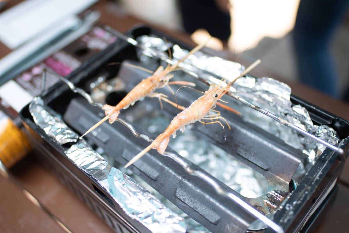 その場で焼く自分の釣ったエビの味わいは格別です。