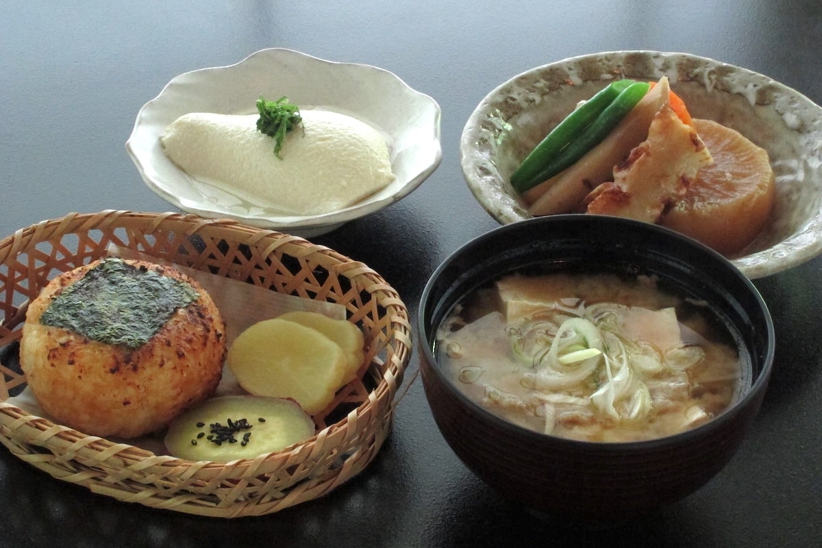 人気の「ゆず定食」(1,100円)は、名物のゆずみそ焼きのおにぎりに、大根やゴボウを柔らかく煮込んだ煮物、とん汁、寄せ豆腐が付いています。