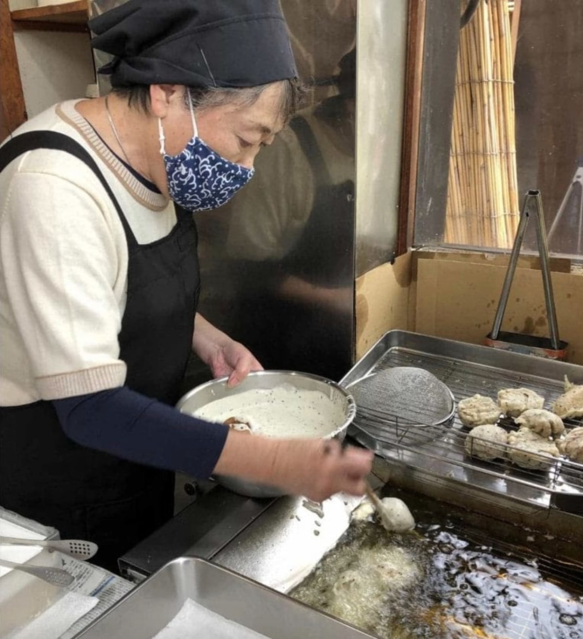また、イトヨリのすり身のてんぷら専門店「汸臼庵(ほうきゅうあん)」の揚げたてさつまあげも人気です。たこと大葉の香りが豊かな「たこしそ」(500円)をはじめ、チーズ入りなどからお好みが選べます。