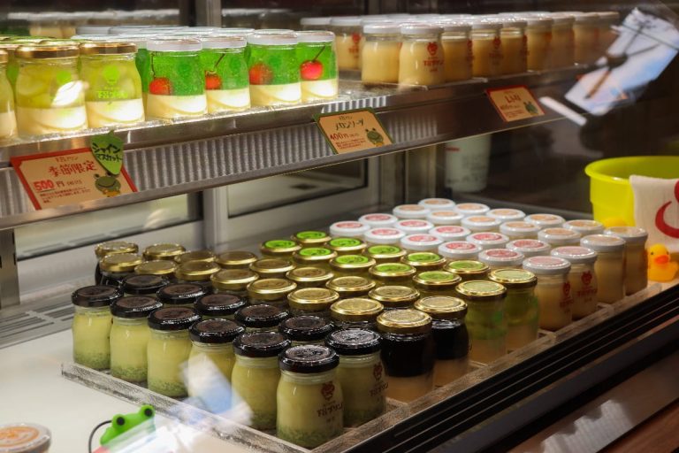 懐かしさが漂う昔ながらの「レトロ」、メロンソーダジュレとサクランボが入った「メロンソーダ」、風呂上がりのコーヒー牛乳をイメージした「珈琲ゼリー」など個性的なプリンがあります。