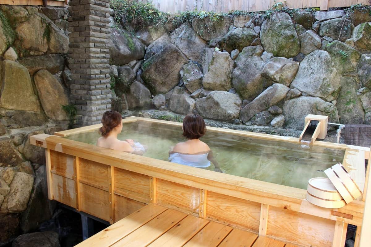 湯来温泉の復活プロジェクトで再建された貸切露天風呂「誠の桧湯」