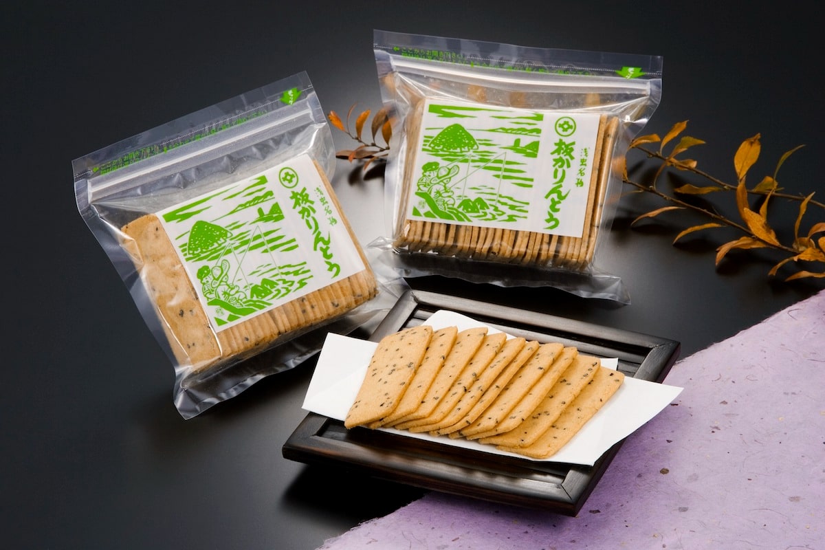 食べ歩きには、「板かりんとう(1袋)」(450円)がおすすめ。ほんのりと甘みがあり、胡麻が入った素朴な味で、パリパリと軽い食感のお菓子です。