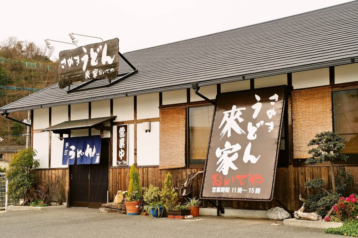 人気観光スポットのエンジェルロードから徒歩約3分の場所にあるさぬきうどんの店「来家(おいでや)」。