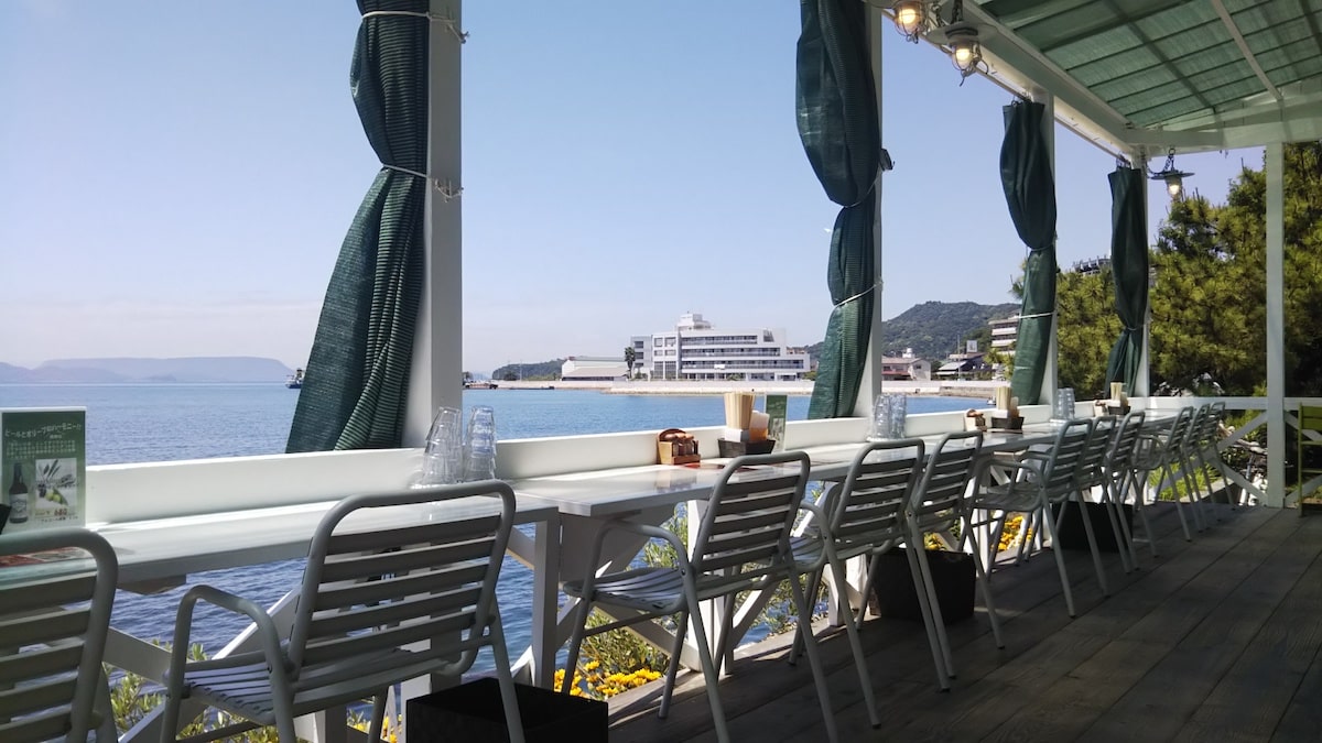 テラス席から瀬戸内海やエンジェルロードの絶景が楽しめる「小豆島ラーメンhishio(ヒシオ)」。
