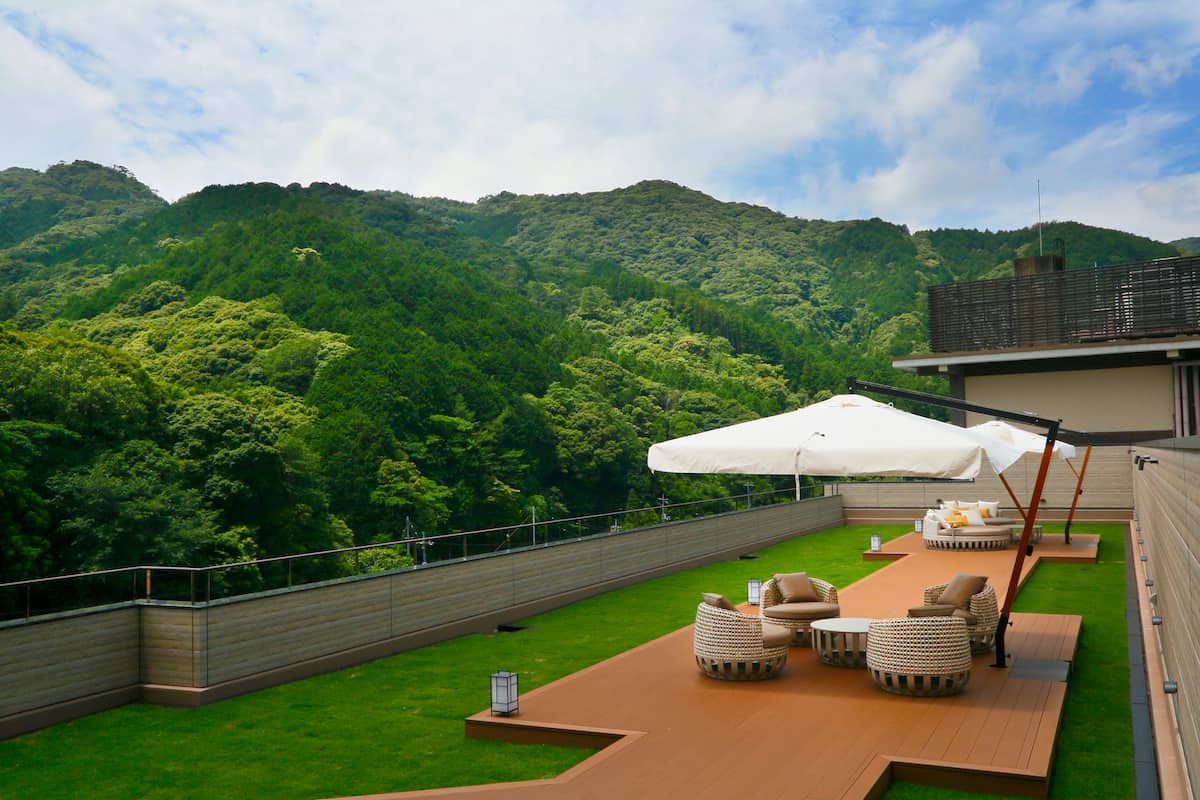 湯あがりには渓流や鳥の囀りを楽しめる川床テラスや吹き抜けのロビーラウンジで寛ぎの時間をお過ごしください。