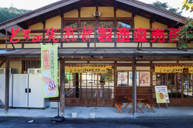 立ち寄った際には、ぜひ焼き立て煎餅(税込100円)を味わってみてください。焼き上がって30秒の間はやわらかな食感で、栃の実の風味を存分に感じることができます。