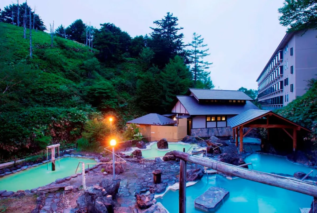 2. 【群馬・万座温泉】多彩な色を発する硫黄泉の湯船をめぐる「万座高原ホテル」