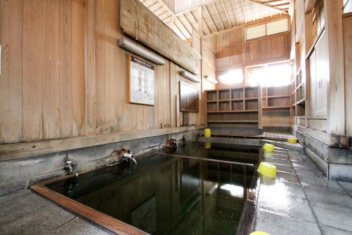 「美人の泉」は、地元の方にも愛される共同浴場で、建物の入り口から硫黄の心地よい香りに包まれ、温泉気分が高まります。