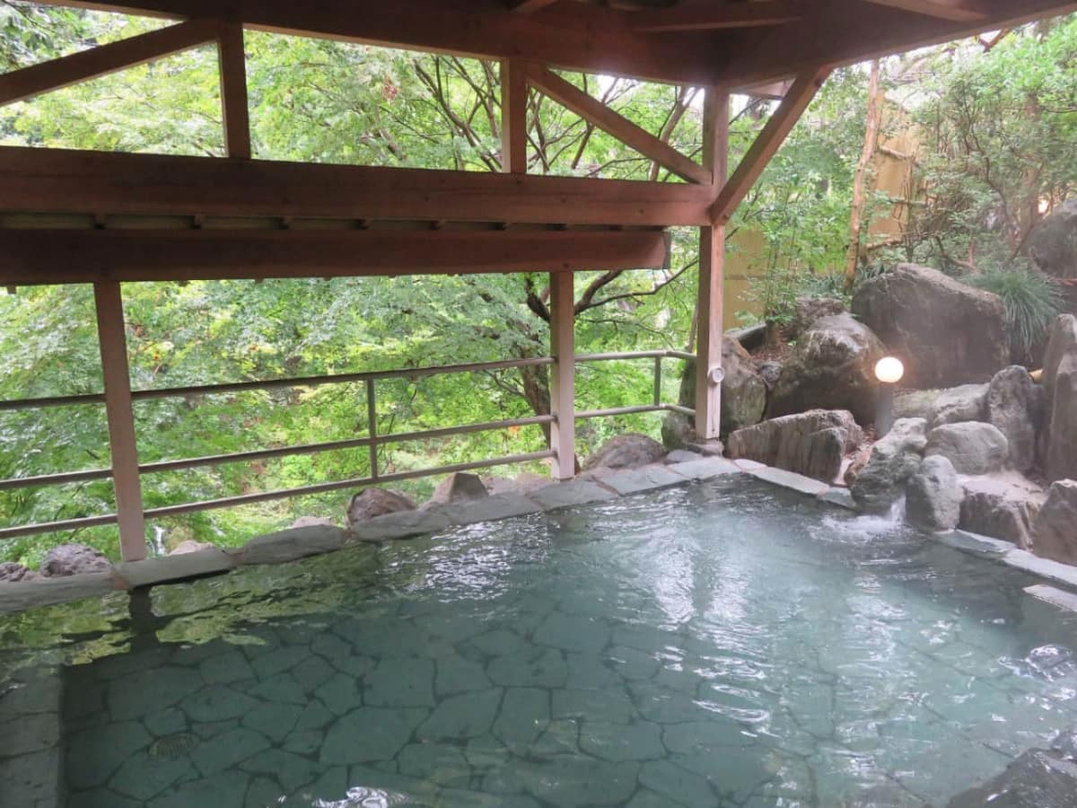 美しいエメラルドグリーンの良質な温泉で、お風呂あがりの肌はつやつやしっとり。四季折々に表情を変える趣のある庭を眺めながら、癒しのひと時が味わえます。