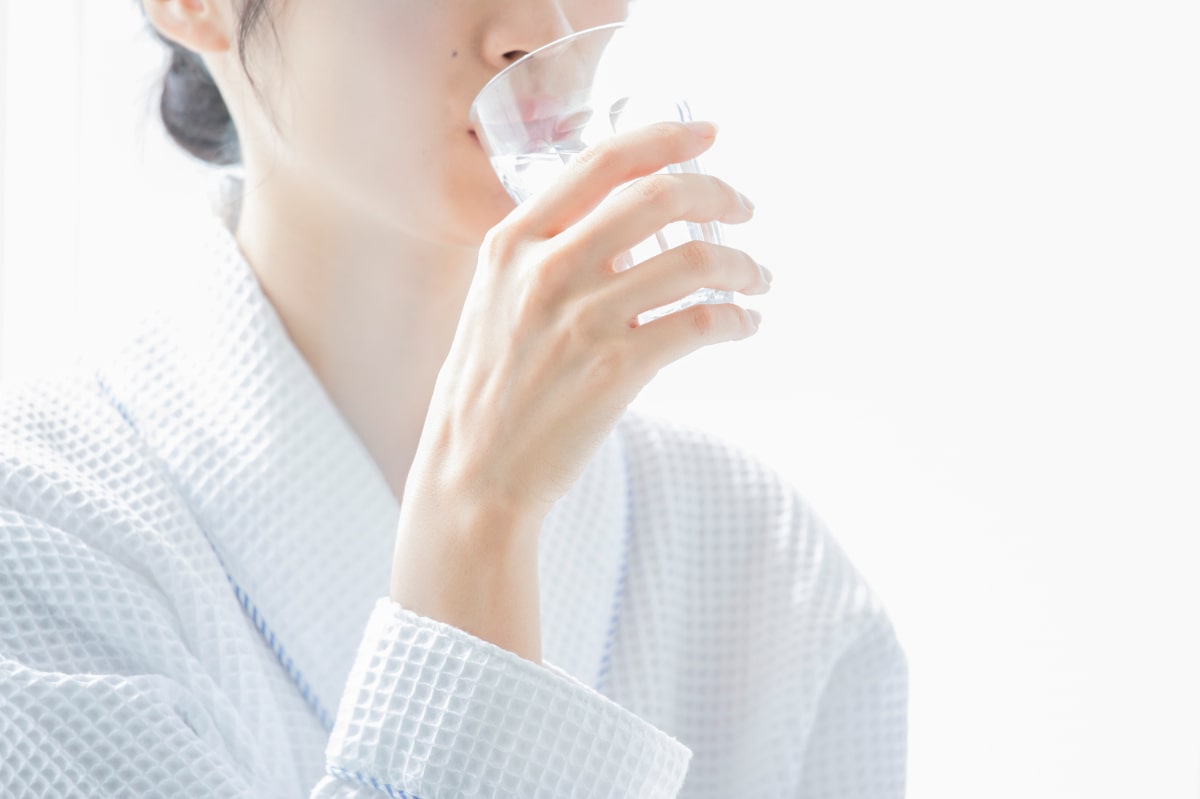 湯当たり後の水分補給に冷たい水を飲むと、せっかく温めた体を冷やしてしまうので、できるだけ常温の水か白湯を飲むことをおすすめします。