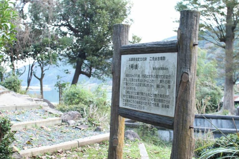 6世紀半の築造といわれている二見谷古墳群(ふたみだにこふんぐん)は、円山川(まるやまがわ)で水運管理や漁業を営んでいた一族首長の墓であり、1975年に兵庫県指定文化財の指定を受けました。現在周辺一帯は史跡公園として整備されています。