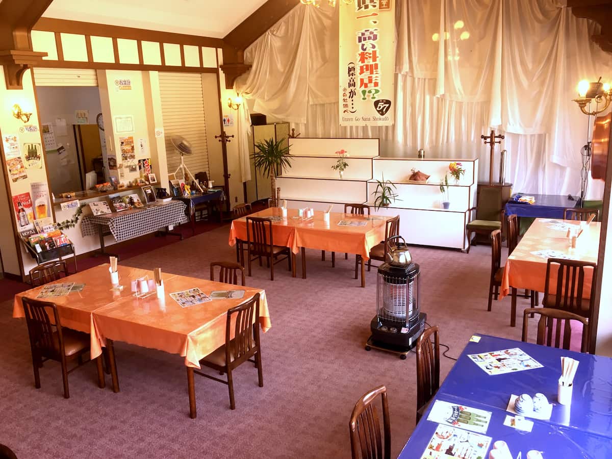店の奥には旅館の名残りで湯船があり、アルミニウム・カルシウム硫黄泉の温泉で身体を休めることもできます(家族湯50分で1,500円)。