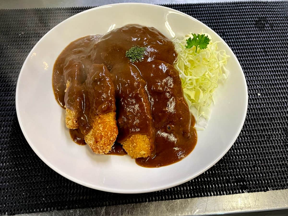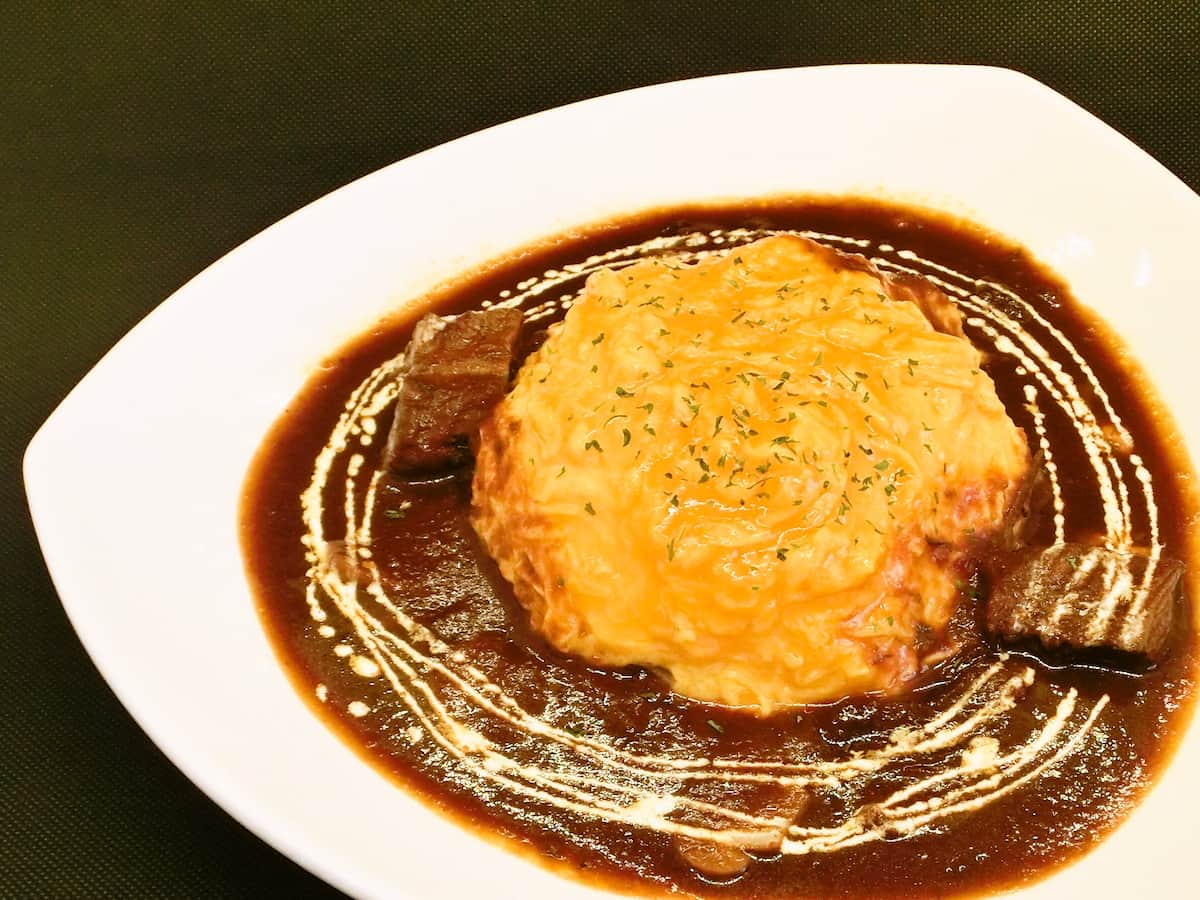 柔らかなお肉、とろとろたまごに、コクのあるデミグラスやチーズのまろやかさを感じる一皿です。