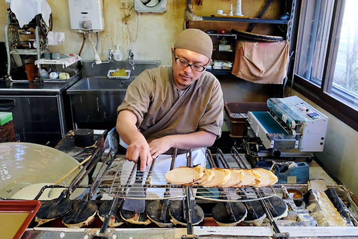 小麦粉や卵、砂糖のほか、温泉水を生地に加えるのが特徴で、ほんのり甘くサクサクとした食感が楽しめます。