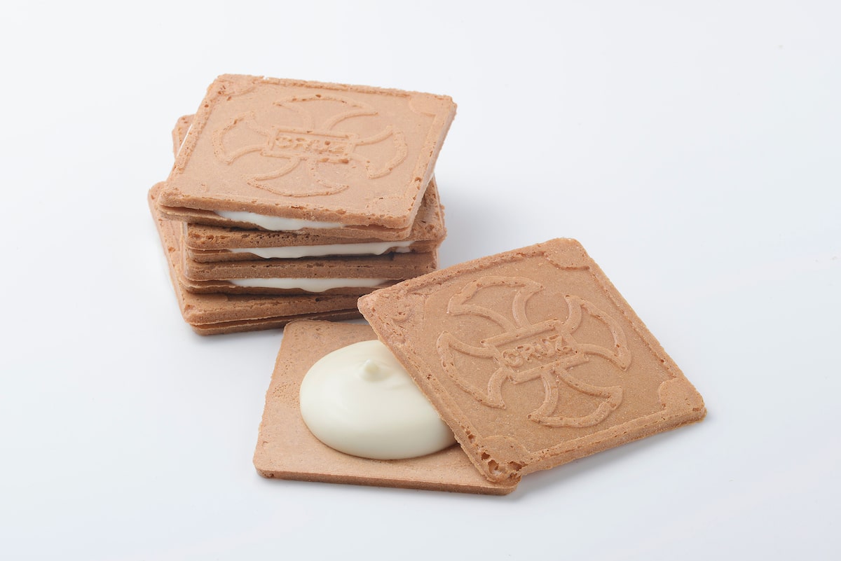 50年以上も愛され続ける長崎銘菓「クルス」は、パリッと軽快な食感の小麦粉で作った生地に生姜が効いたまろやかな甘みのホワイトチョコレートなどを挟んだお菓子です。