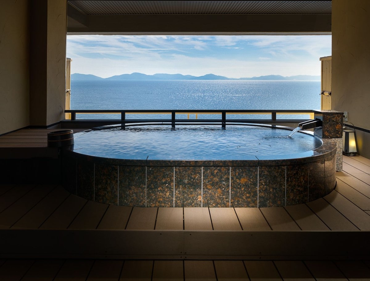 屋上の天空露天風呂から眺める三河湾の絶景「天空海遊の宿 末広」
