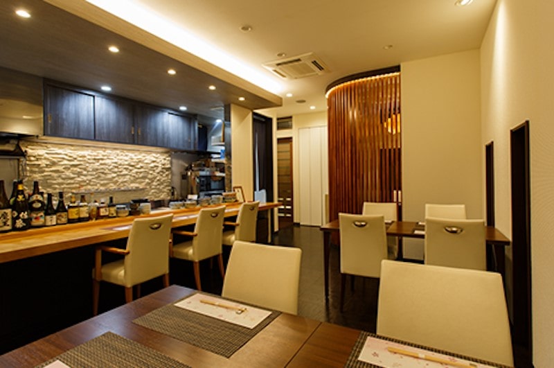 優雅で洗練されたお洒落な店内で、のどぐろや松茸に和牛など季節の食材を活かしたコース(昼・夜ともに8,800円〜)を完全予約制で味わえる和食専門店「和 とどろき」。